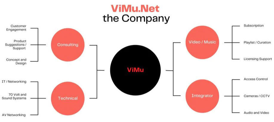 ViMu.Net is the First 2 letters of Video, the first 2 letters of Music and the .Net is for the Networks that we put in. We are a "turn key" partner, supplying phones, Internet Support as well as Sound and TV imaging. We are a Certified Savi Controls Partner, the same system used in all Top Golf locations.